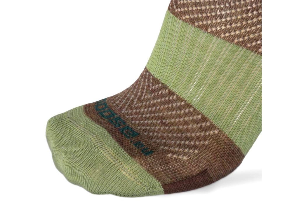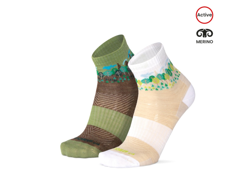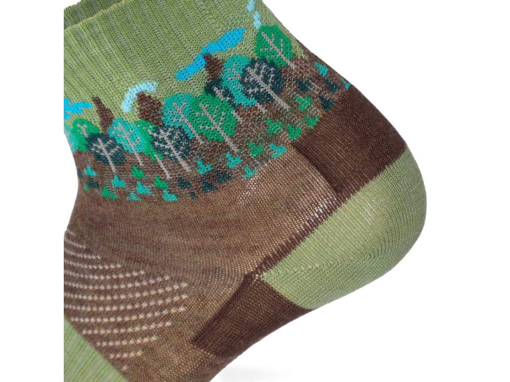 Přírodou inspirované ponožky z řady ORLIK Merino s lesním motivem jsou připraveny pro celoroční využití pro nejrůznější sportovní aktivity, ale třeba také jako pohodlné ponožky pro chvíle volna nebo do práce. Ponožky jsou v hladkém provedení s jemnou větrací síťkou na nártu. Vyrobeny jsou jako mírně snížené, dobře tedy padnou do nízkých a středně vysokých bot. Zachovávají si sportovní střih, Achilovka, pata, špice i část chodidla jsou opatřena dodatečným zesilováním. Klenba chodidla je navíc podpořena elastickým páskem proti klouzání ponožky. Špička je jako vždy zakončena kvalitním, jemným, netlačícím švem. Nosným prvkem této řady je kvalitní Merino vlna v kombinaci s různými typy elastanů a italskými polyamidy. Složení: 54% Polyamid, 44% Vlna, 2% Elastan