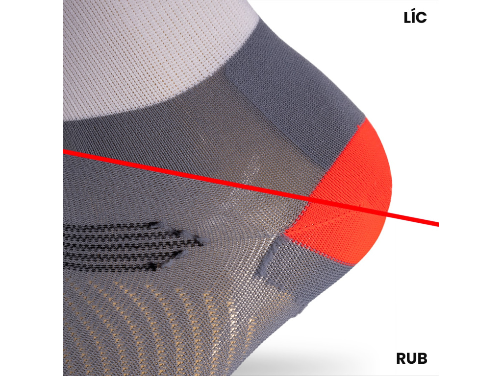 Vyšší ponožka RACE Poly s elastickým lýtkem skvěle sedí na noze. Zóny v patě, špičce, chodidle a v Achilovce jsme zesílili, abychom maximálně prodloužili životnost ponožky. Z chodidla do nártu je napletená odvětrávací síťka a pro lepší posazení na noze jsme do chodidla umístili elastický pásek.