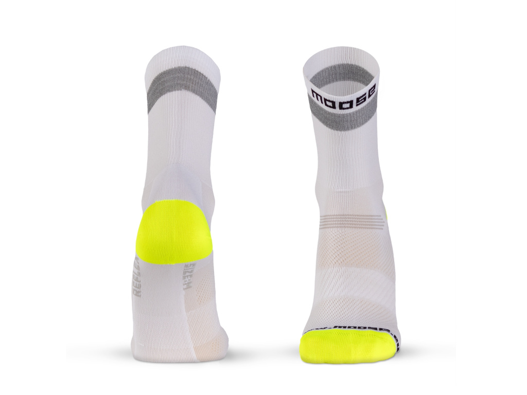 Cyklistická ponožka RACE Reflex má bezpečnostní reflexní proužek. Za šera i ve tmě budeš bezpečně vidět.