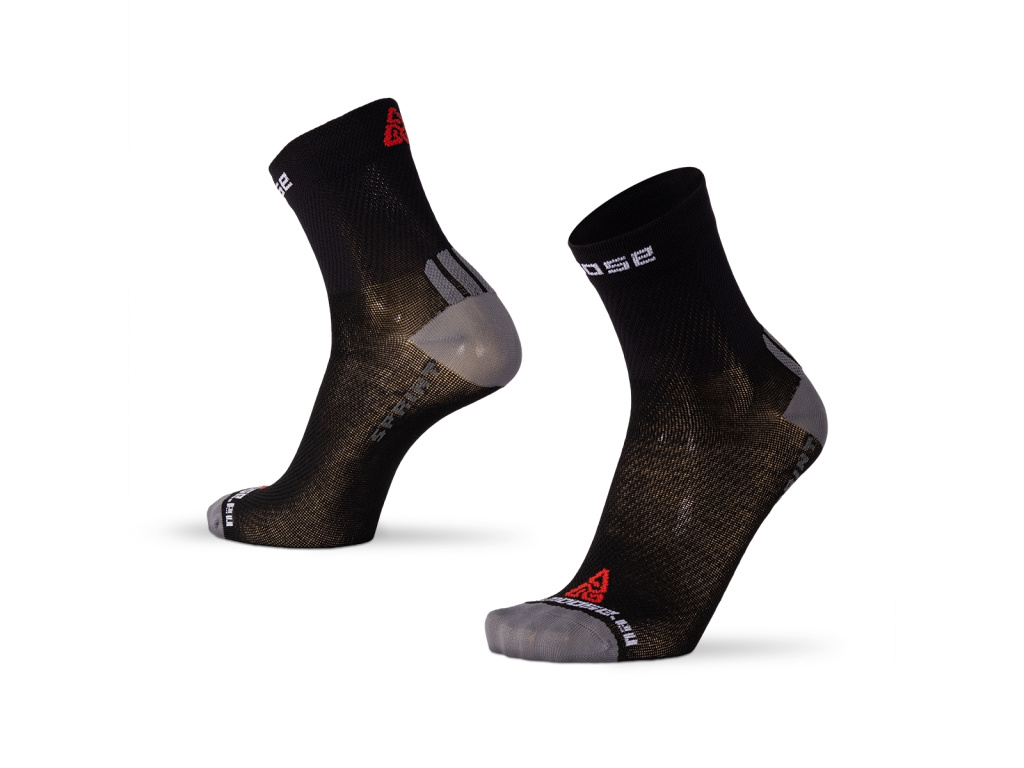 Celoelastická běžecká ponožka pro parné letní dny ve městě i v terénu. Základní struktura ponožky je maximálně odlehčená, aby nic nebránilo rychlému transportu vlhkosti ven. Díky svým vlastnostem a použitému materiálu drží pevně na noze, což je důležité hlavně jako prevence proti vzniku puchýřů a oděrek při možném tření ponožky o kůži.
