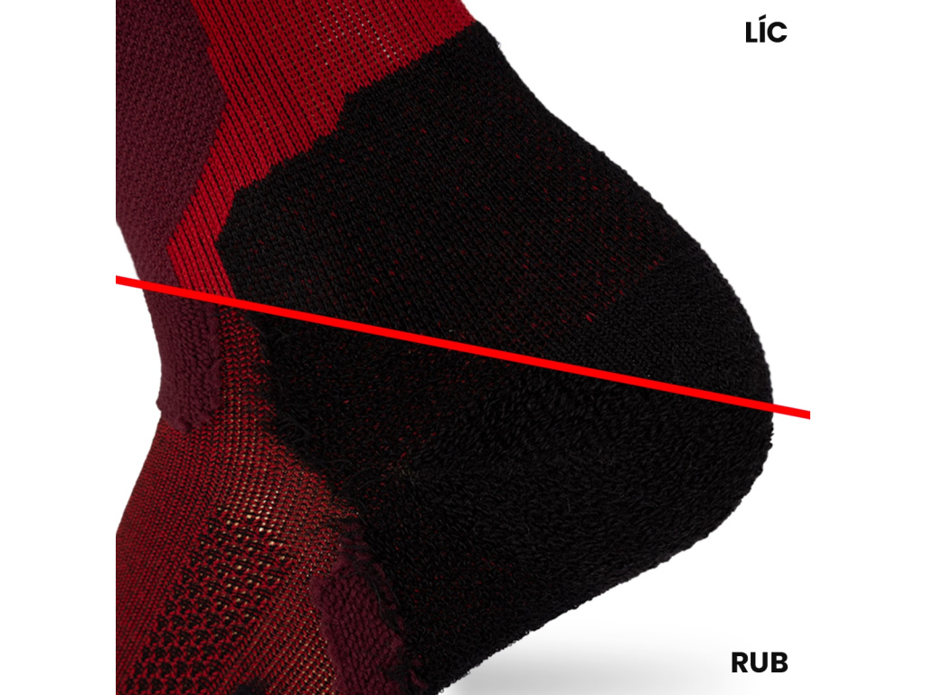 Díky speciálnímu polyamidu a promyšlené konstrukci ponožky jsme dosáhli snížení pocitu přehřívání nohou hlavně u výkonnostních sportovců.