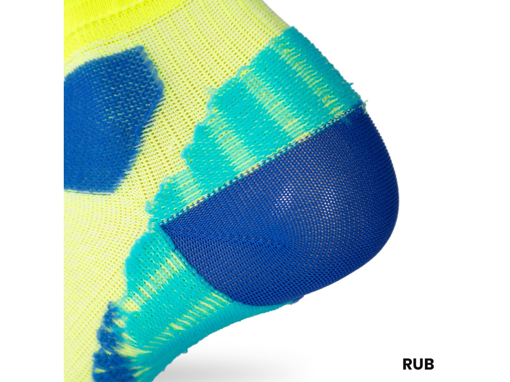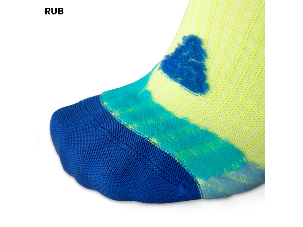 Běžný elastický pásek v chodidle jsme nahradili pružným materiálem do celé ponožky, díky kterému se na noze usadí doslova jako druhá kůže. Tenký materiál efektivně odvádí pot a předurčuje ponožku hlavně pro běhání v létě.